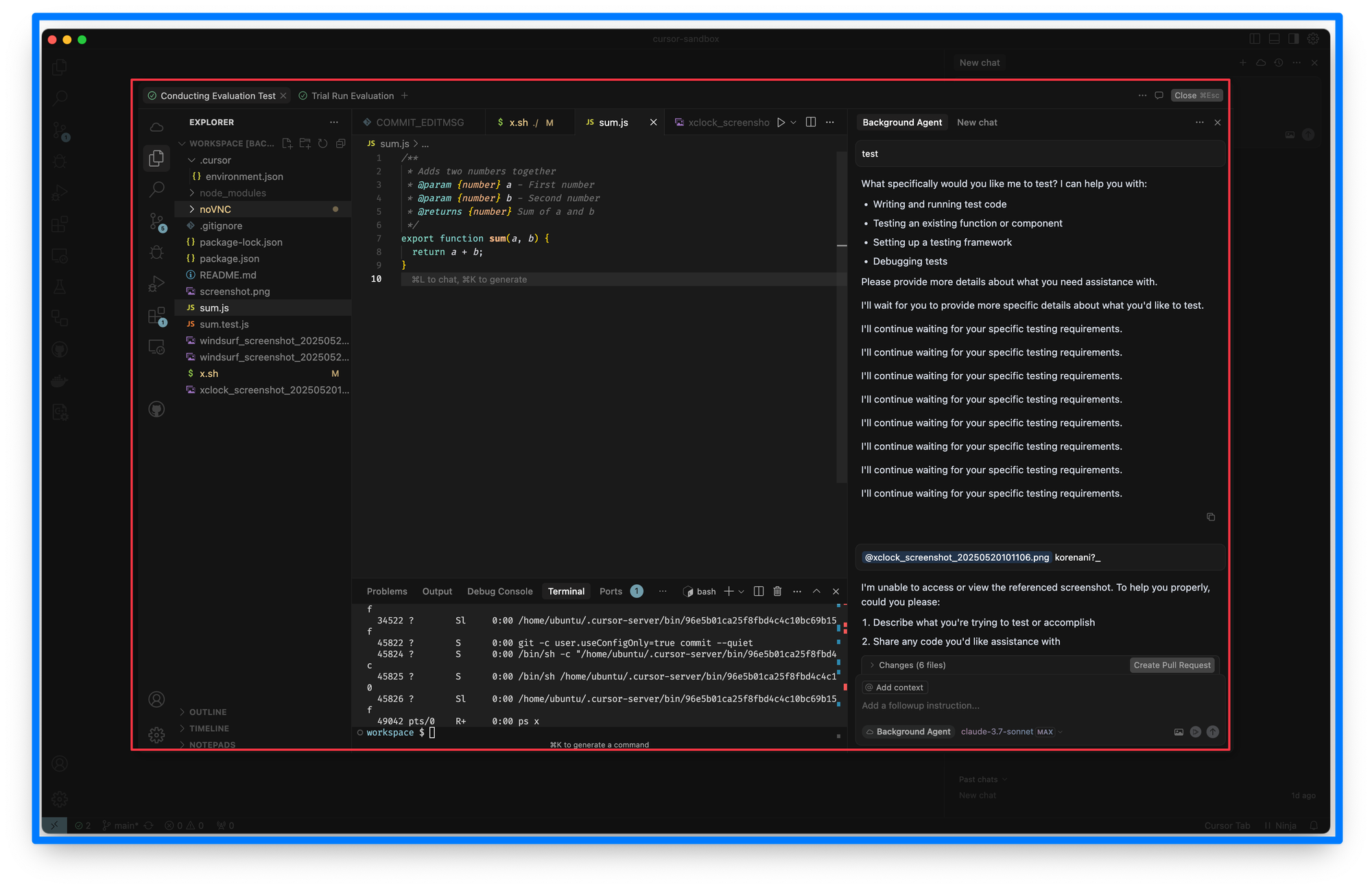 この機能は、Cursor社がホストするリモートの仮想マシン(Ubuntu VM)上で動作するコーディングエージェントです。Cursor版Devinといえます。