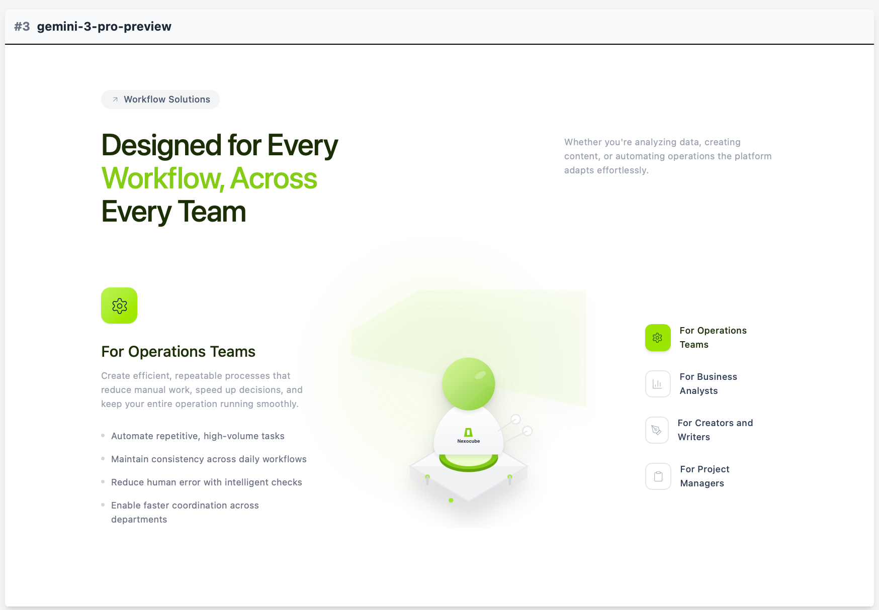 Gemini 3 ProとClaude Opus 4.5のリリースが近かったこともあり、世間ではこの2つのモデルの性能比較が盛んに行われていました。中でもクリエイターたちの意見で目立ったのは、「Gemini 3 Proの方がOpus 4.5よりもUIデザインが得意だ」というものでした[1]。