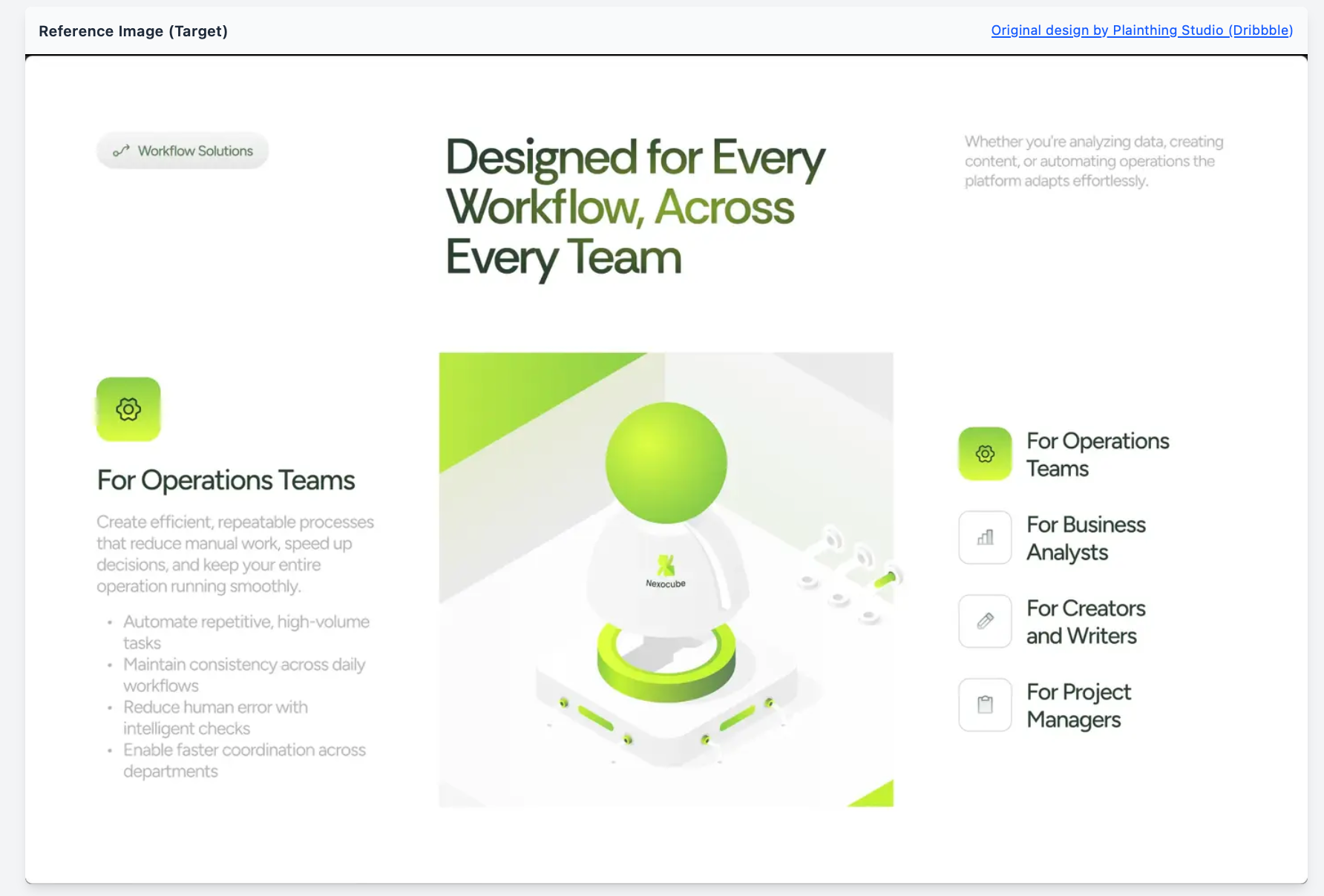 題材としたのは以下の「Nexocube - AI Intelligence Platform」のデザイン画像です。これは単にDribbbleのトップページから自分で選びました。