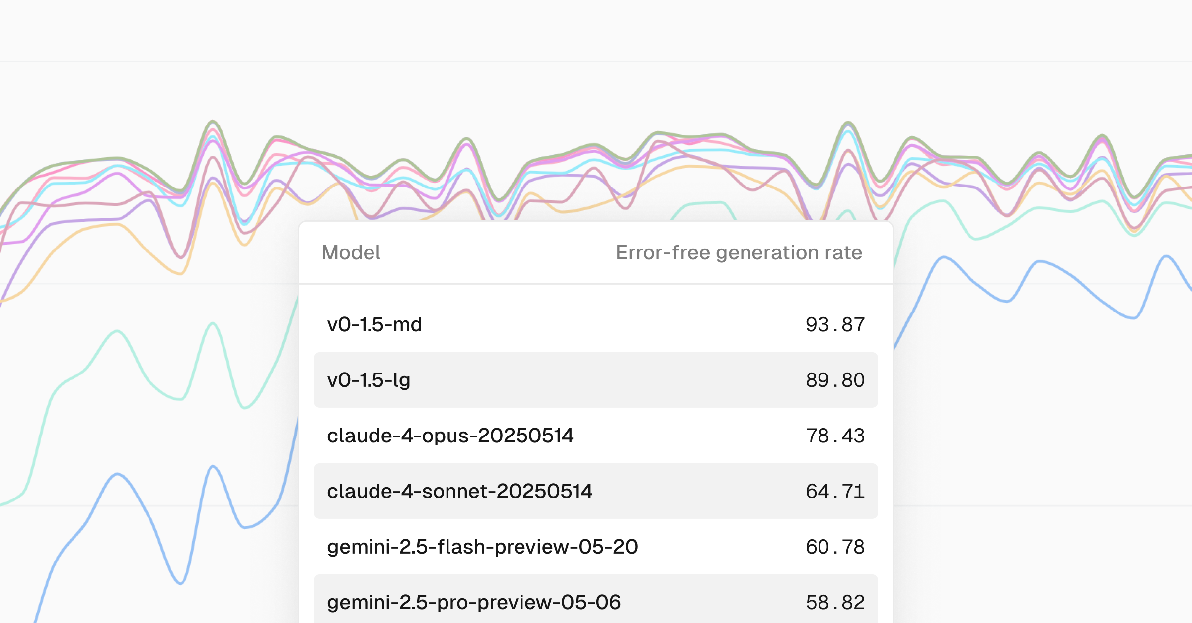 また、v0のようなモダンなWebアプリのコード生成というユースケースに、LLMは特化して設計されているわけではありません。LLMの性能評価で使用されるベンチマークは、Pythonのデータサイエンスやアルゴリズム問題が中心であり、最も活躍が期待される場面はチャットアシスタントでのコードサンプル提供です。