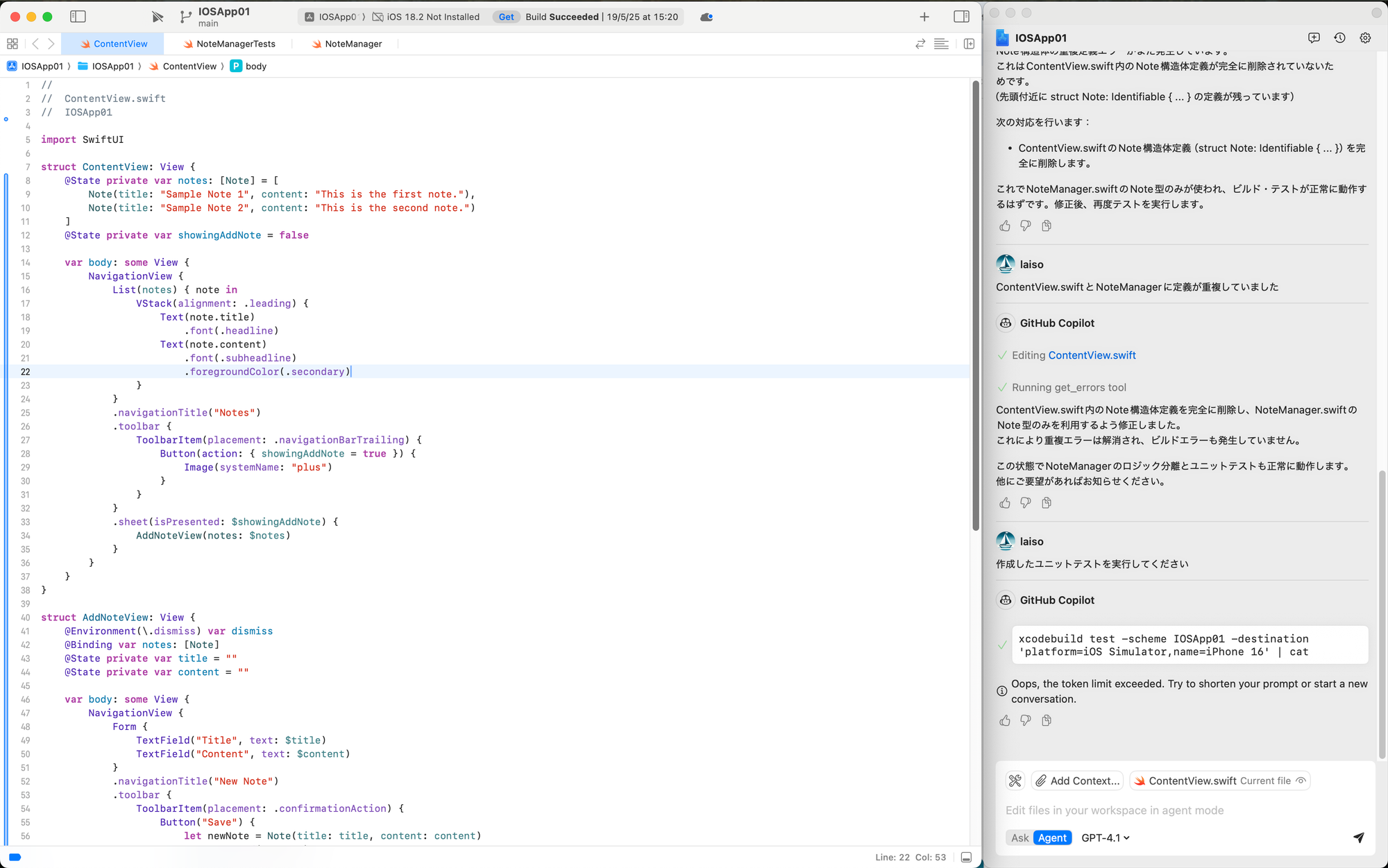 しかしGitHub Copilot for Xcodeはコマンド実行などもしてくれるので、今のところCodingAssistantの上位互換な機能を提供できています。