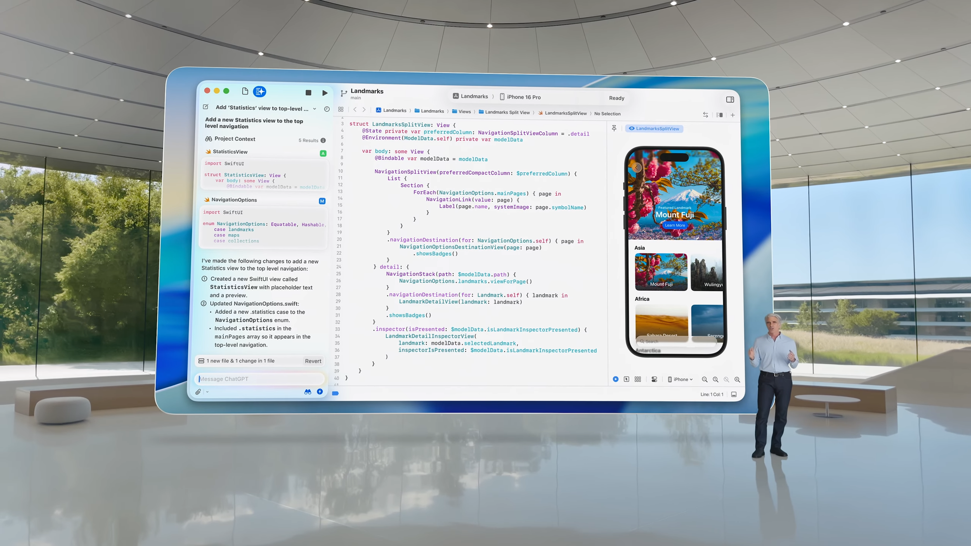 WWDC 2025でXcodeにChatGPTが統合されて自然言語で指示するとSwift書いてくれるというアナウンスがあったので使ってみました。内部の設定ファイルにCodingAssistantという名前がついていたのでそう呼びます。